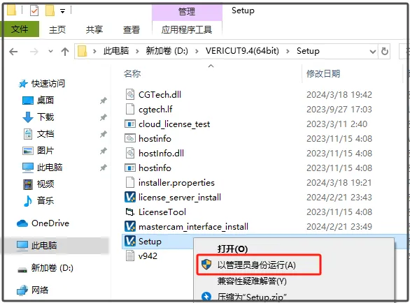 第四步:选中【setup】右击,选择【以管理员身份运行】。