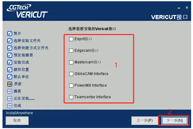 第十五步:勾选需要安装的接口,然后点【下一步】。