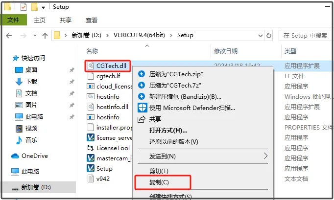 第三十一步:返回【setup】文件夹,复制【CGTech.dll】文件。