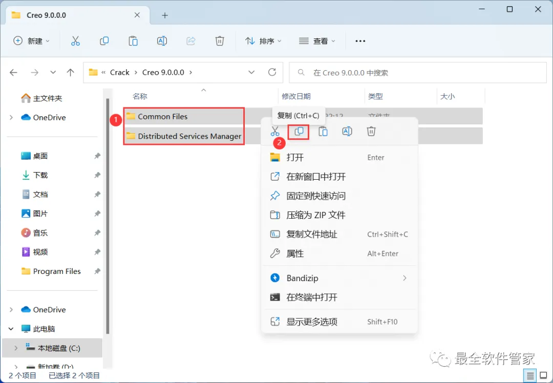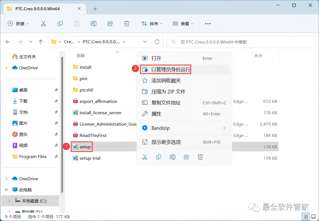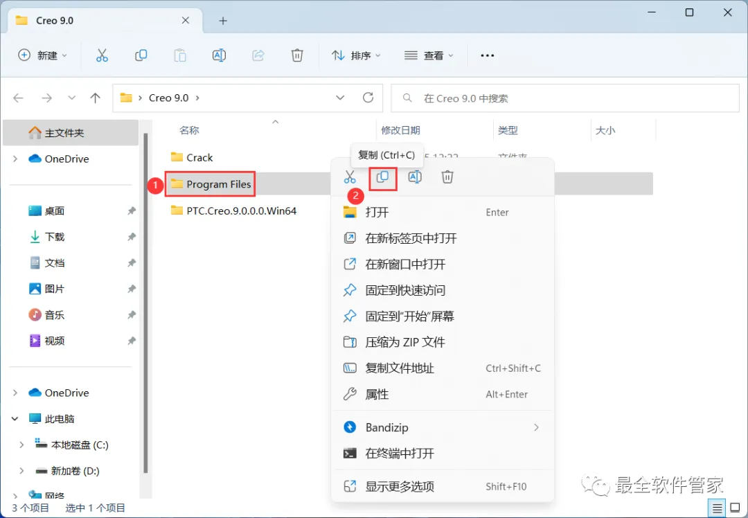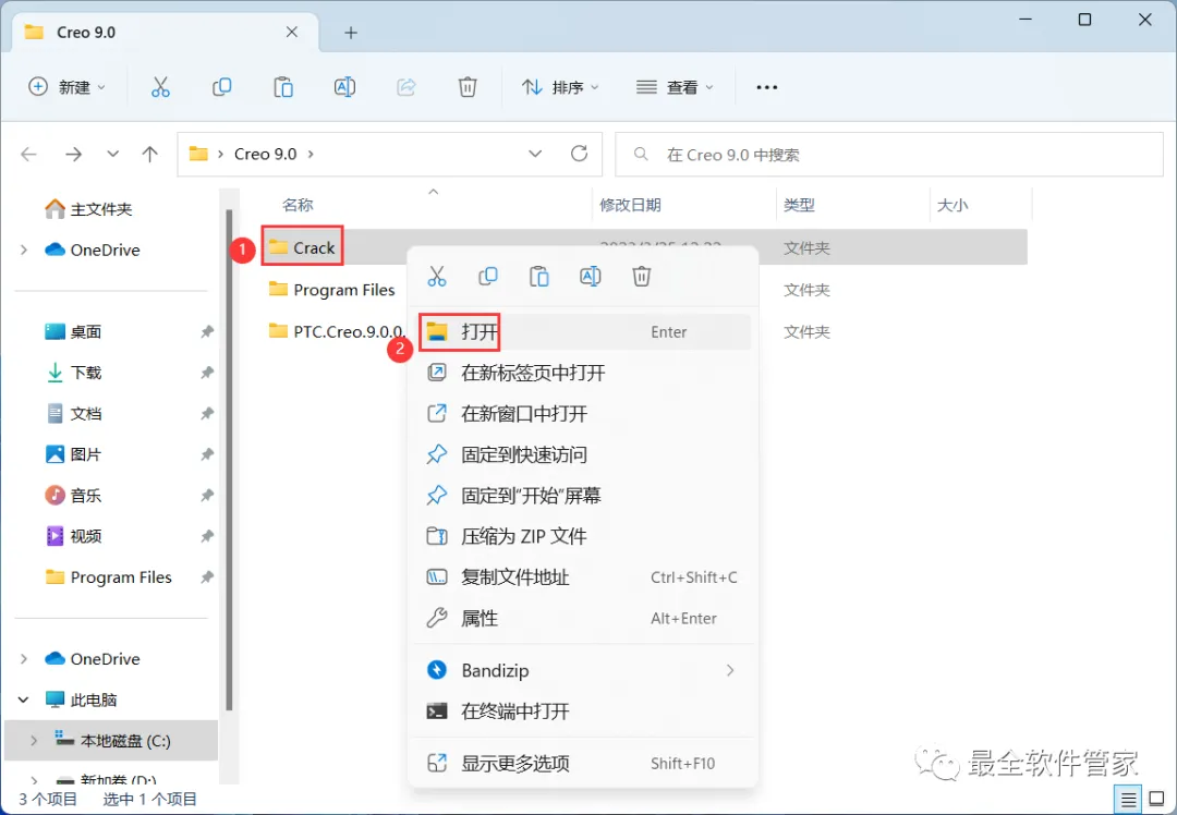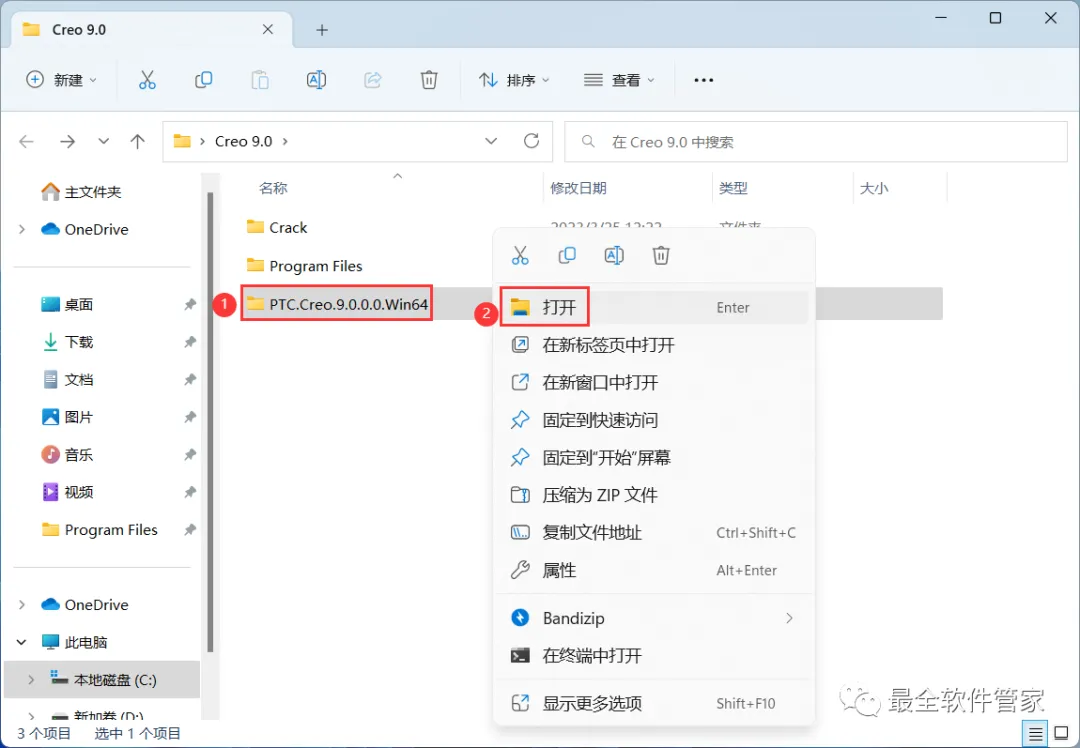 18、找到【PTC.Creo.9.0.0.0.Win64】文件夹,右键【打开】它