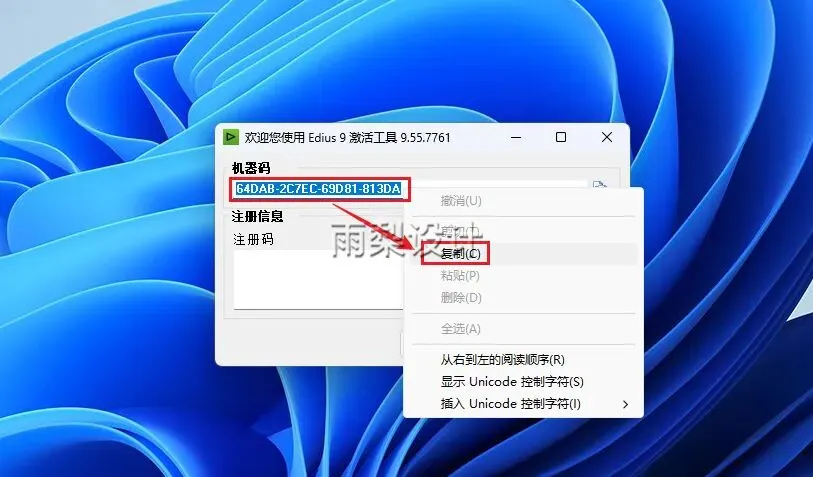 11.返回第7步;将【注册机的注册码】复制到【软件注册码】的位置,点击【注册】