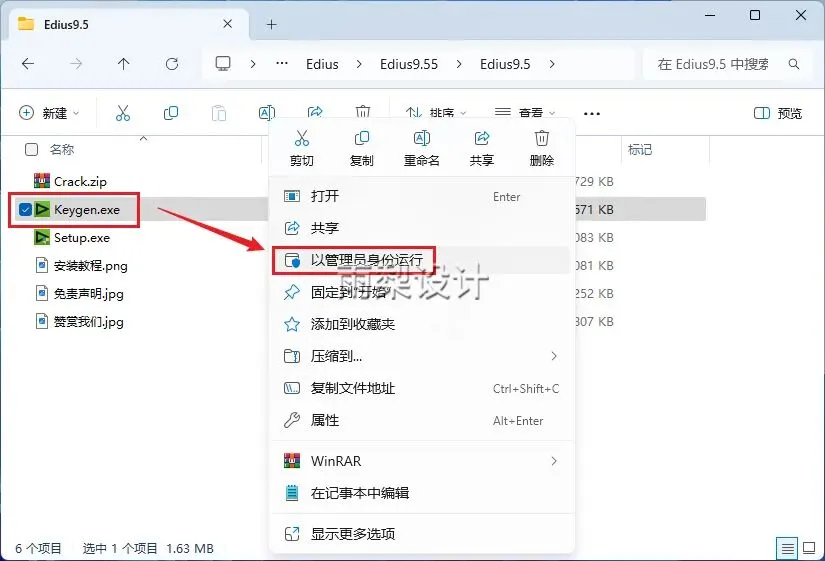 9.右键【Keygen.exe】选择【以管理员身份运行】