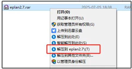 第二步:将下载好的文件选中,右击,解压到……(解压时一定注意杀毒软件提示,如有报错,及时处理,如恢复文件并添加信任)