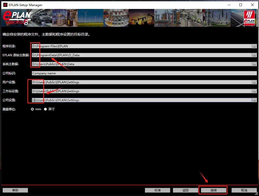 第十一步:将安装位置改为D盘,只改盘符即可,然后点【继续】。