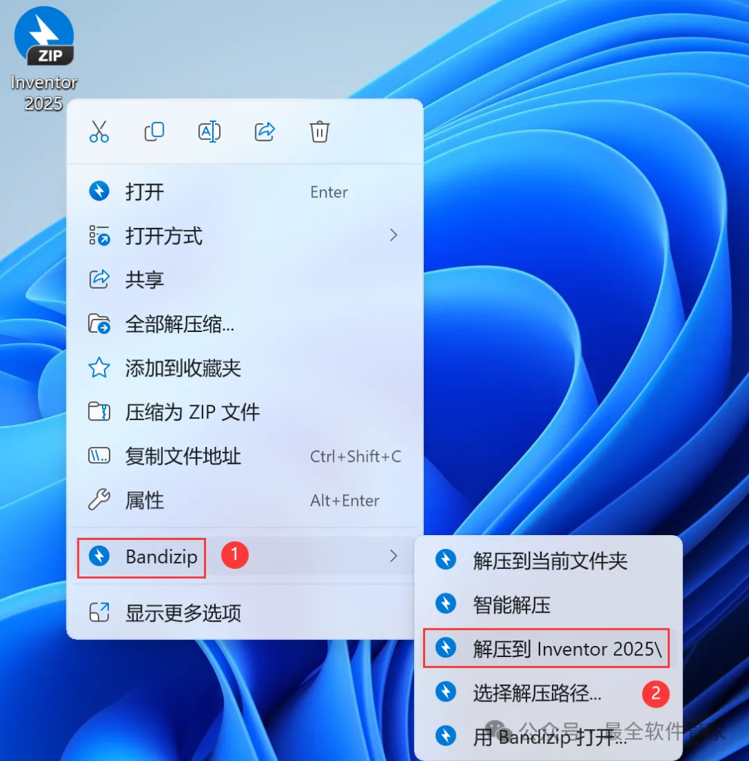 1、下载Inventor 2025软件安装包到电脑上,右键选择【解压到Inventor 2025\】