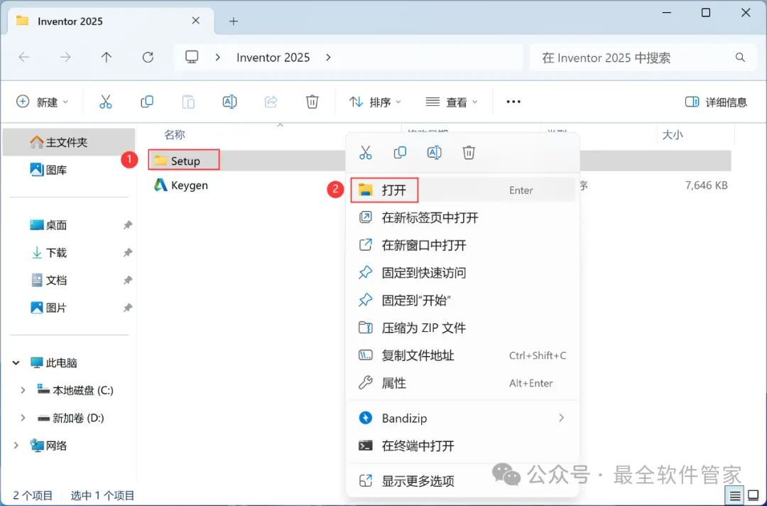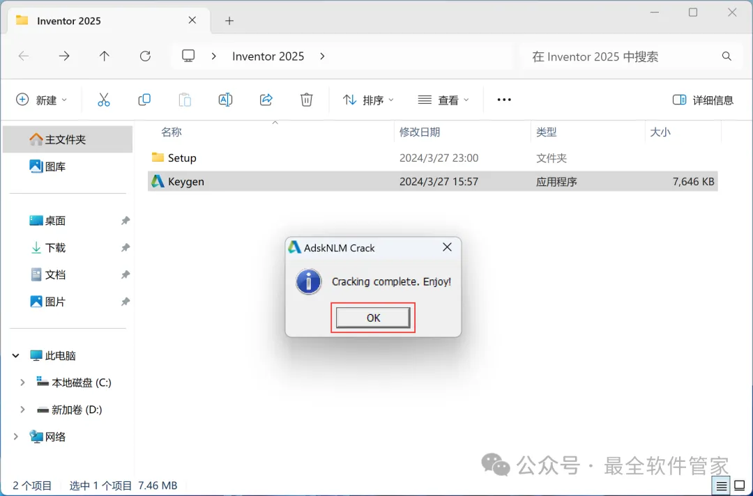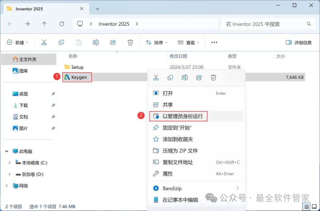 10、回到Inventor 2025文件夹,找到【Keygen】程序,右键选择【以管理员身份运行】它