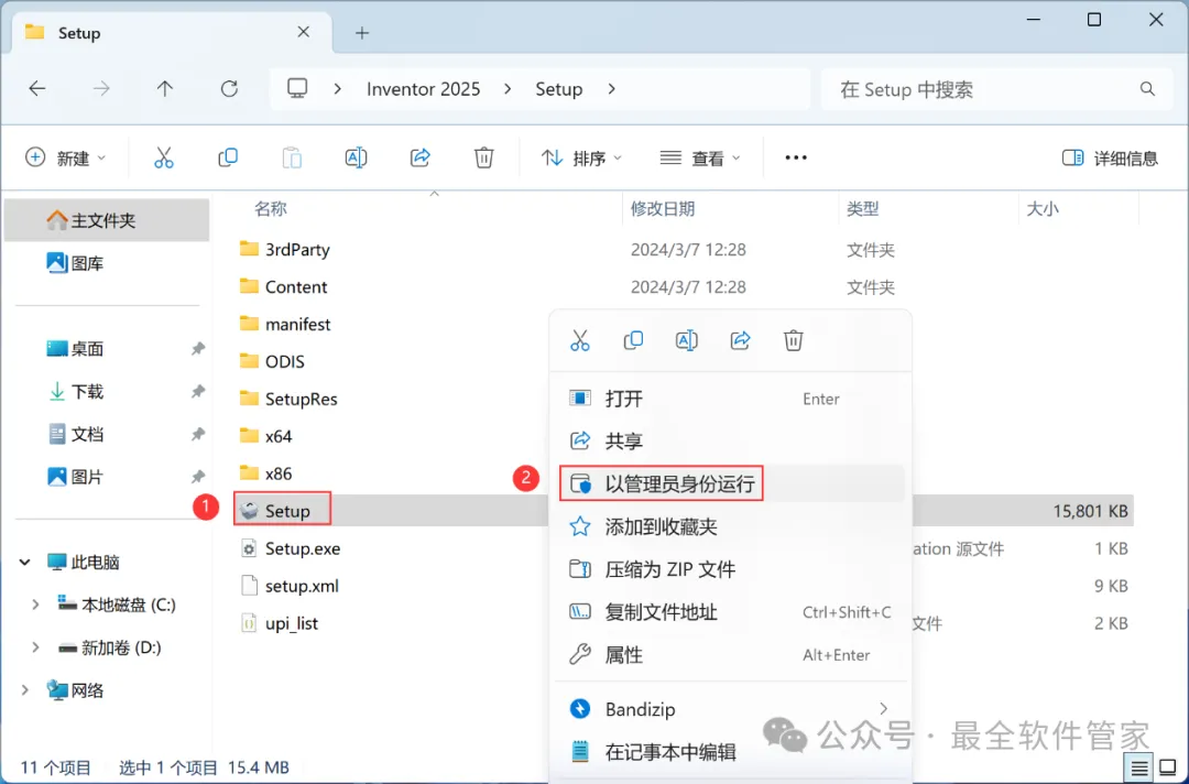 4、找到【Setup】应用程序,右键选择【以管理员身份运行】它