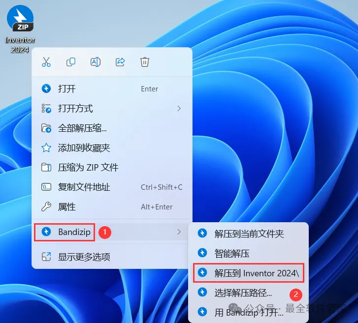 1、下载Inventor 2024软件安装包到电脑上,右键选择【解压到Inventor 2024\】