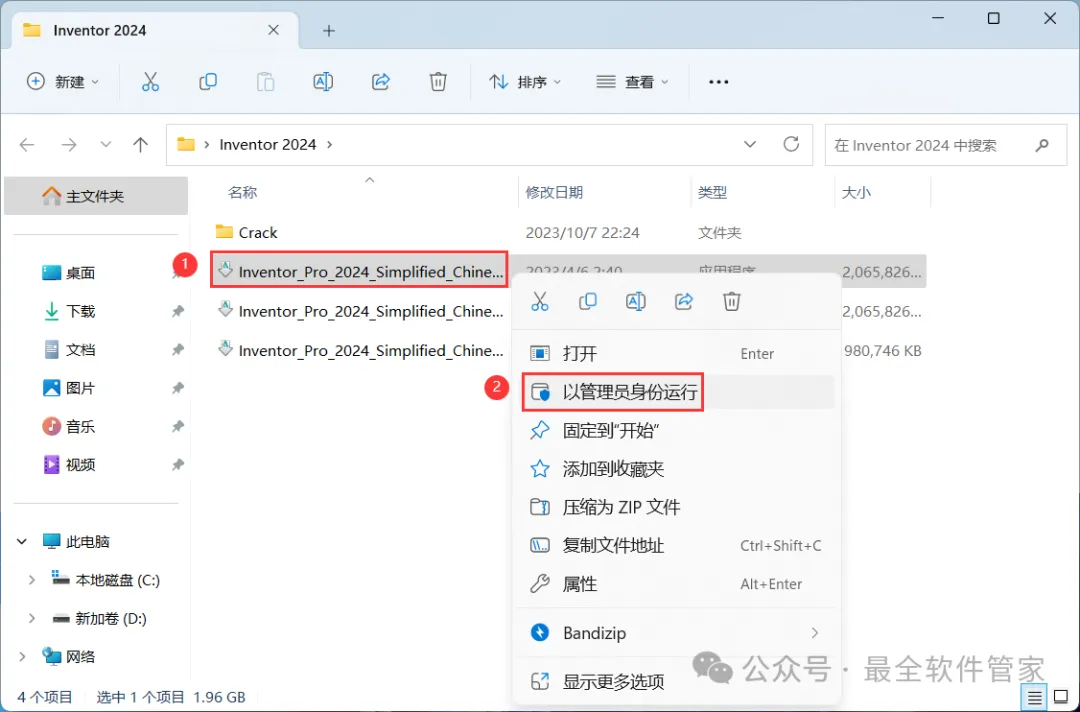3、找到【Inventor_Pro_2024】应用程序,右键选择【以管理员身份运行】它