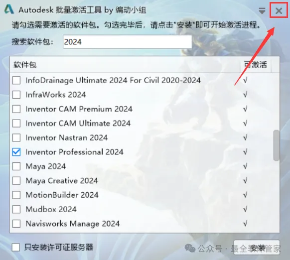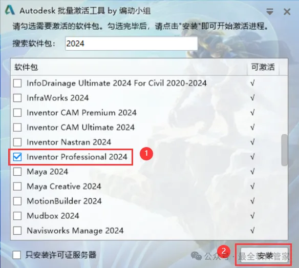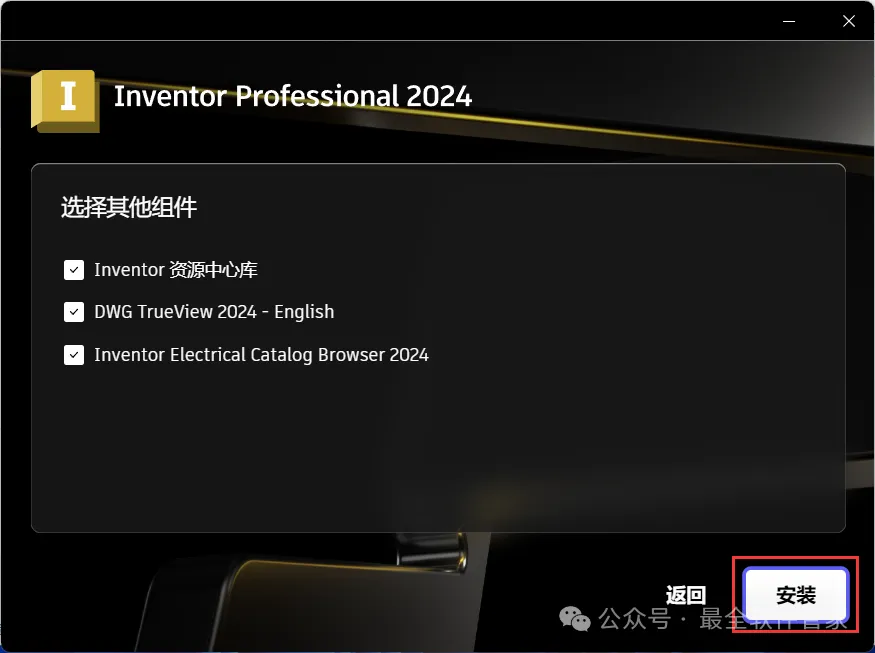 12、勾选【Inventor Professional 2024】,再点击【安装】
