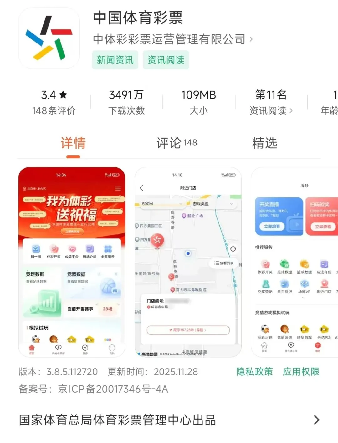 请认准体彩官方App“中国体育彩票”,仅在苹果App Store、安卓应用市场等官方应用商店上架,且功能仅限于中奖信息查询、门店导航等,绝无购彩、充值功能。