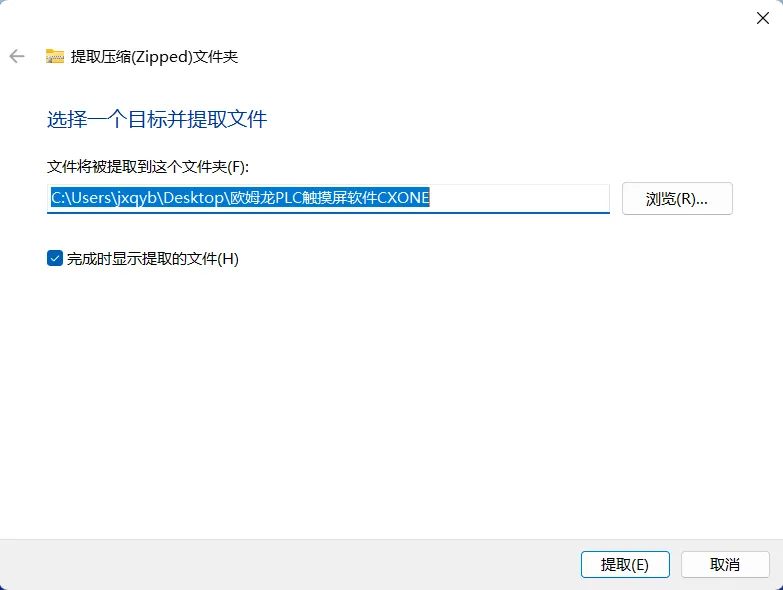 2.1,鼠标右击【欧姆龙PLC触摸屏软件CXONE】压缩包(Win11系统需先点击“显示更多选项”)选择【全部解压缩】。如下图: