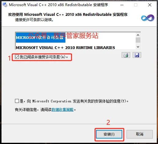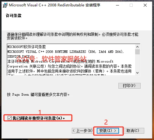 第七步:勾选【我已阅读……】,然后点【安装】。