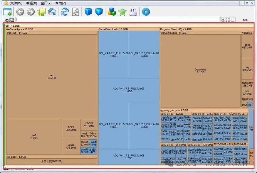 一个强大的Windows 磁盘分析工具。使用它可以快速分析整个磁盘的分布比例,它会按照方格来排布文件,方格越大说明文件占用空间越大。你可以一键删除不需要的大文件,清理系统空间。