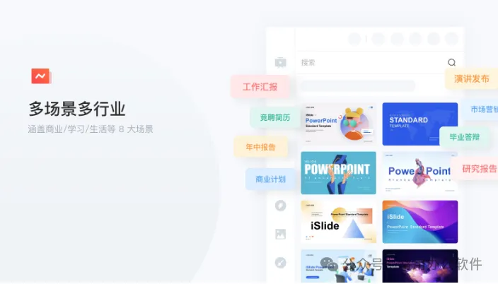 通过iSlide插件,你能轻松做出高大上的PPT。进入官网下载安装包,按提示安装完成后,打开 PPT,就可以在工具栏看到 iSlide 的功能菜单了。插件内置20W+ 模板素材,包含免费图片、主题、图标、智能图表等 8 大在线资源库,一键导入,快捷高效。PPT 的同一色彩还可以一键修改,而且各种3D,免费图库供你挑选。即使不懂设计,也能简单、高效地创建各类专业 PPT 演示文档。