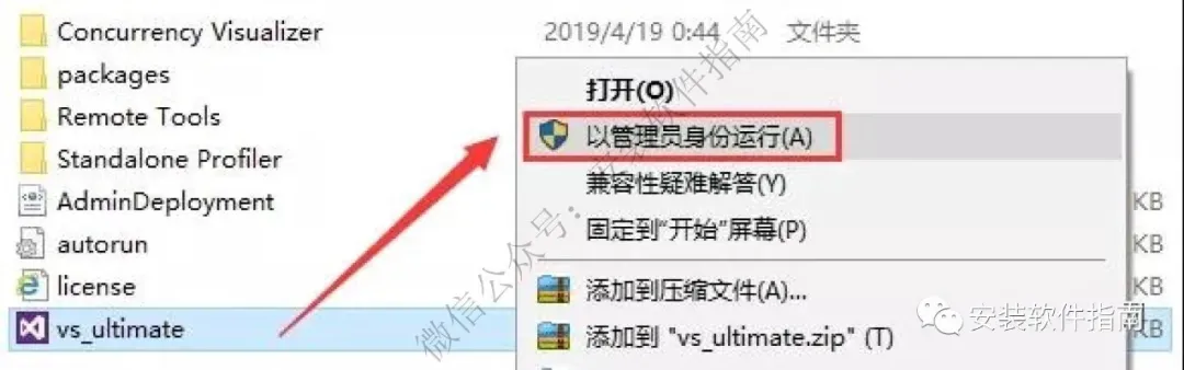 4.点【vs_ultimate】并【以管理员身份运行】,注意:安装前查看一下IE浏览器是不是10版本以上,如果不是请先升级