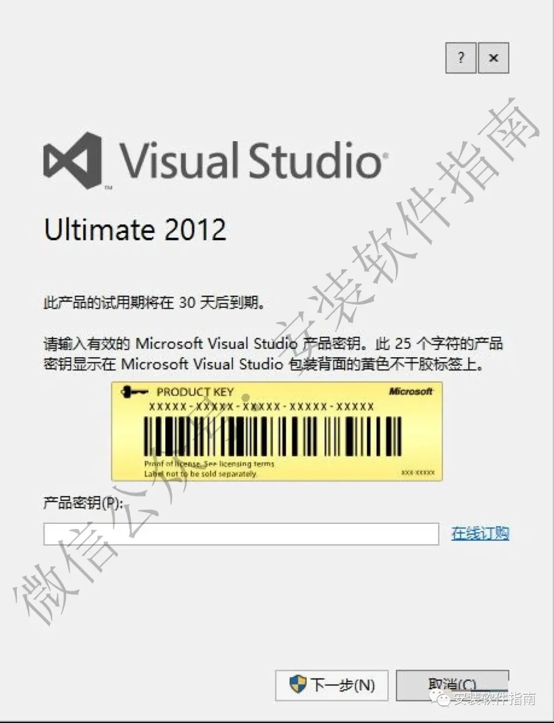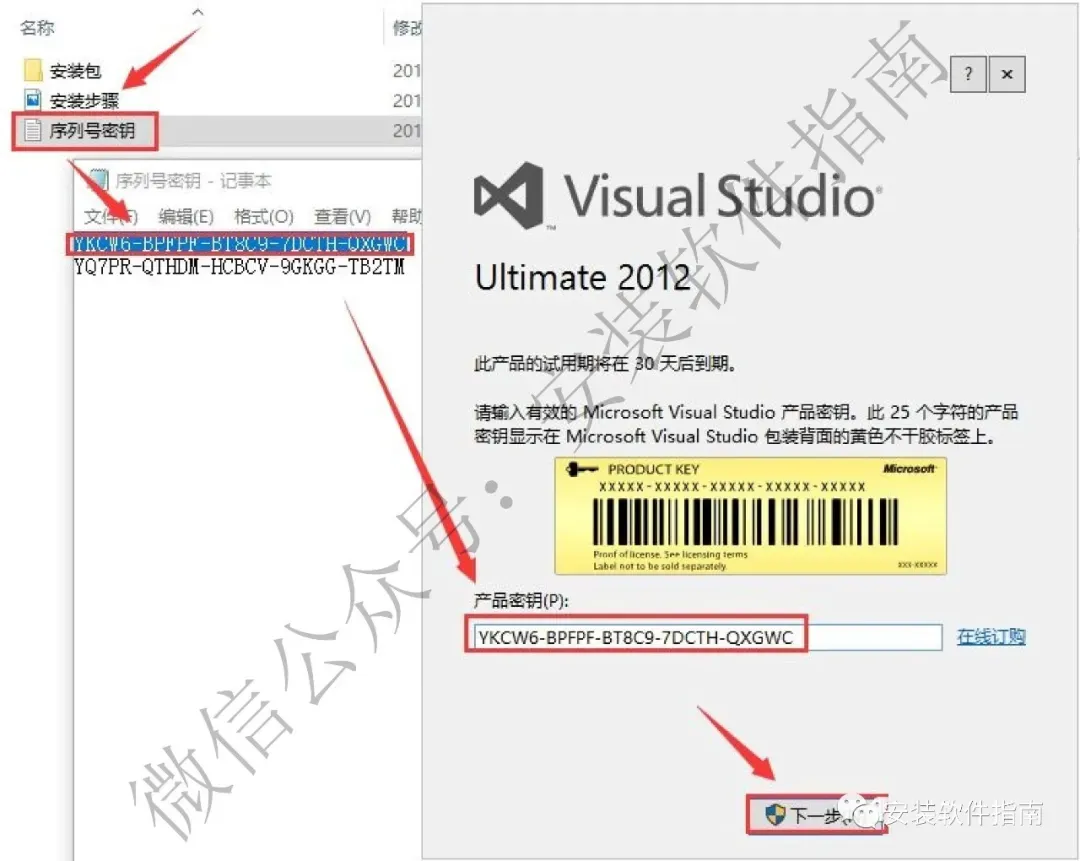 13.将激活码复制粘贴到产品密钥处,然后点【下一步】