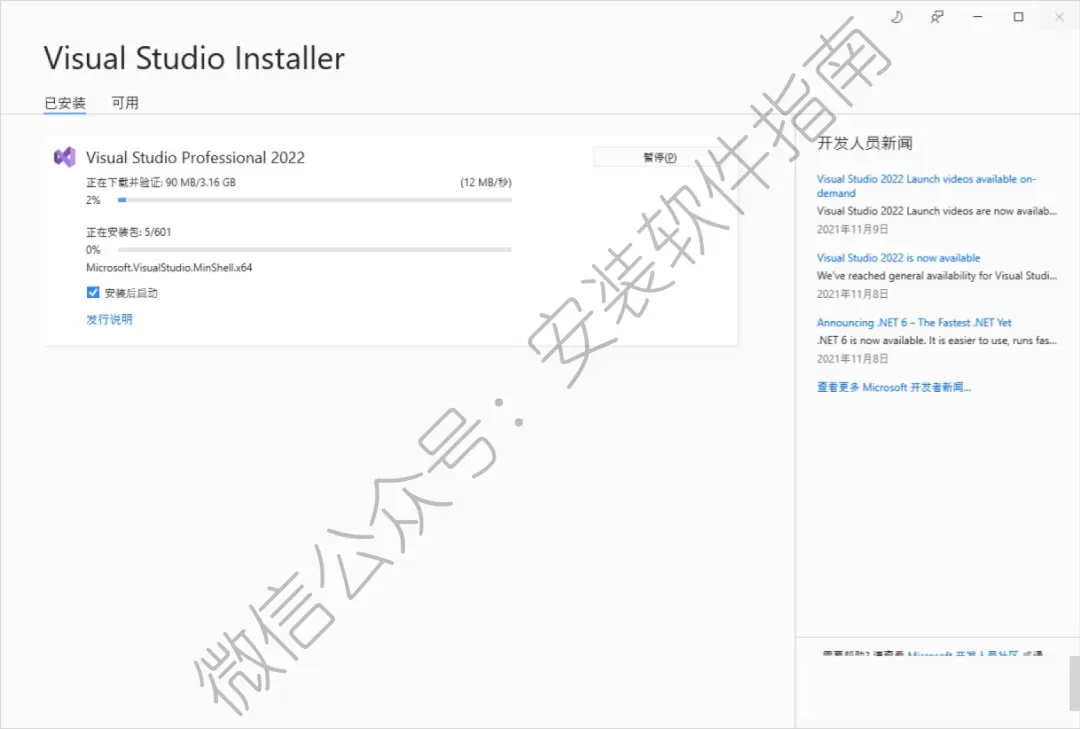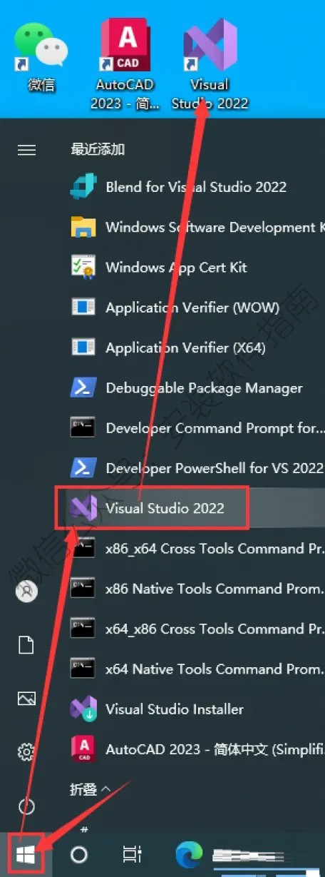 11.软件安装完成不会在桌面自动生成快捷方式,点击【开始菜单】,在最近添加里找到【Visual Studio 2022】程序,左键按住,直接拖拽到桌面即可.