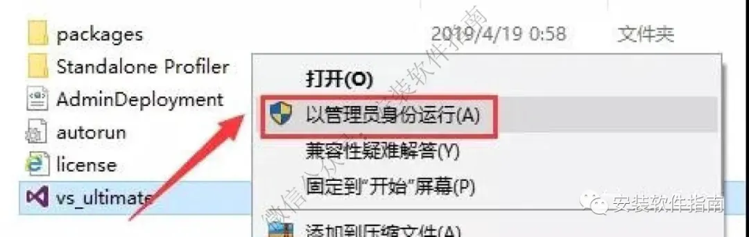 4.右键点【vs_ultimate】并【以管理员身份运行】,注意:安装前查看一下IE浏览器是不是10版本以上,如果不是请先升级