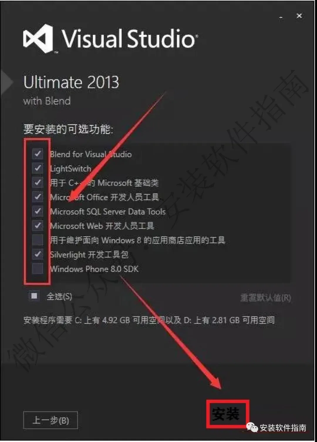 7.点自己所需产品,点【安装】