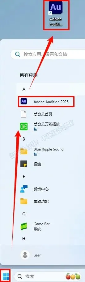 8.点击“开始“菜单栏,点击“所有应用“,找到安装的Adobe软件,鼠标左键拖拽到桌面上即可创建桌面快捷方式