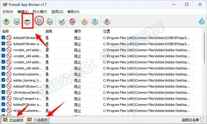 温馨提示:“Adobe exe firewall block windows.bat”文件会将Adobe相关程序添加到防火墙禁止联网,能够有效避免正版弹窗问题。禁止联网后将无法使用 Adobe 的在线功能。如果您需要使用在线功能,可以通过提供的“防火墙工具”选择并移除出站和入站规则。