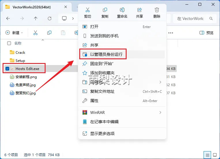 2.右键【Hosts Edit.exe】选择【以管理员身份运行】