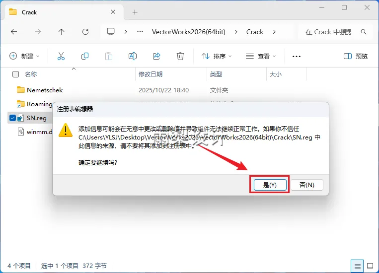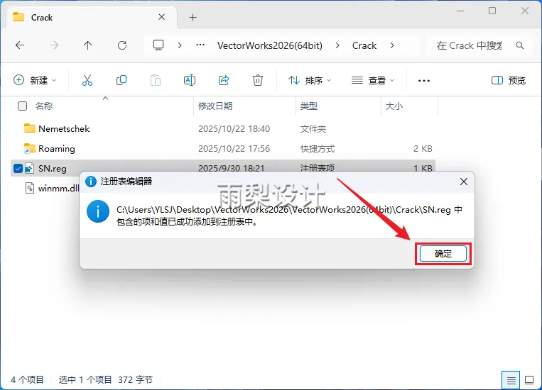 9.双击运行【SN.reg】