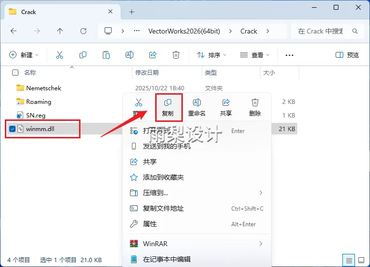 15.右键【winmm.dll选择【复制】