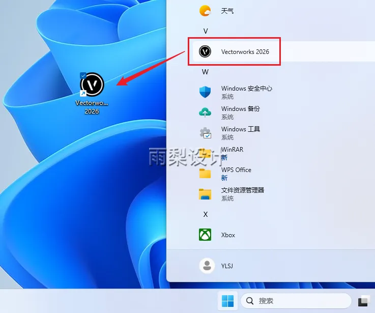 16.在【开始】>【所有应用】>【Vectorworks 2026】左键安装拖到桌面
