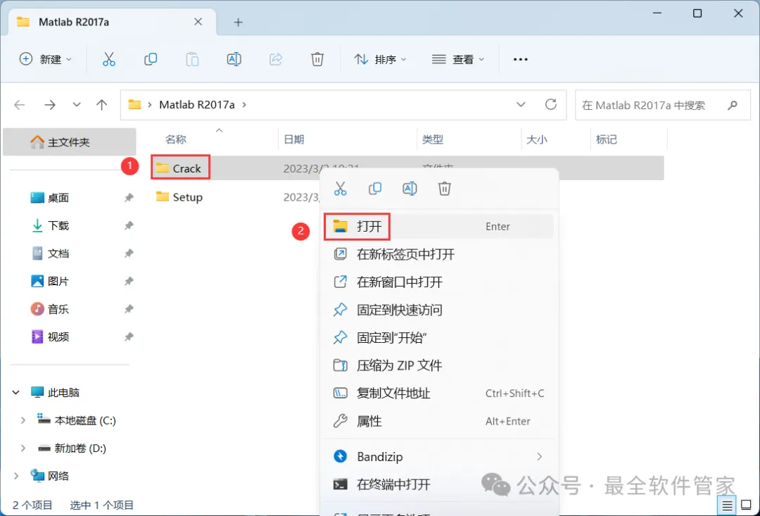 14、回到Matlab R2017a文件夹,找到【Crack】文件夹,右键【打开】它