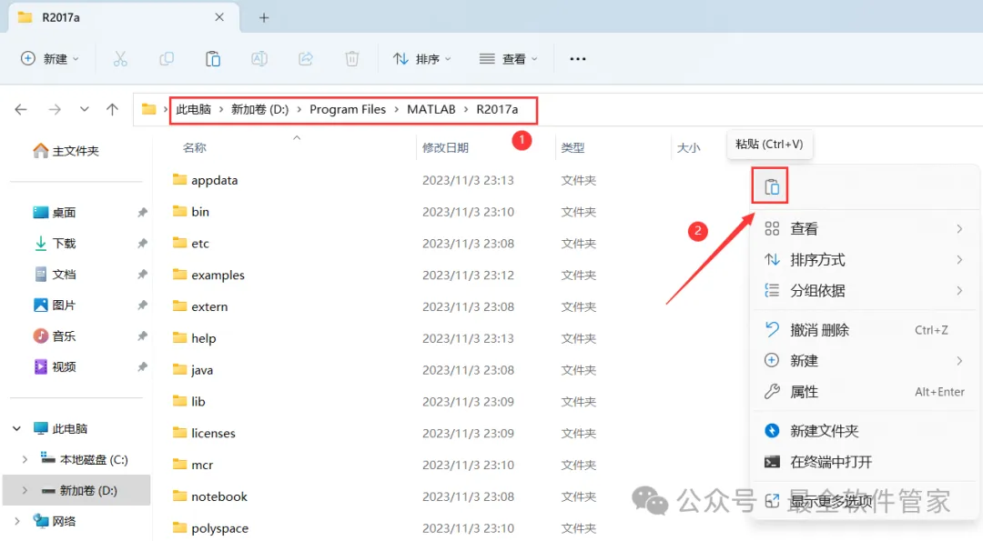 16、打开路径:D:\Program Files\Polyspace\R2017a,再右键文件夹的空白处,点击【粘贴按钮】