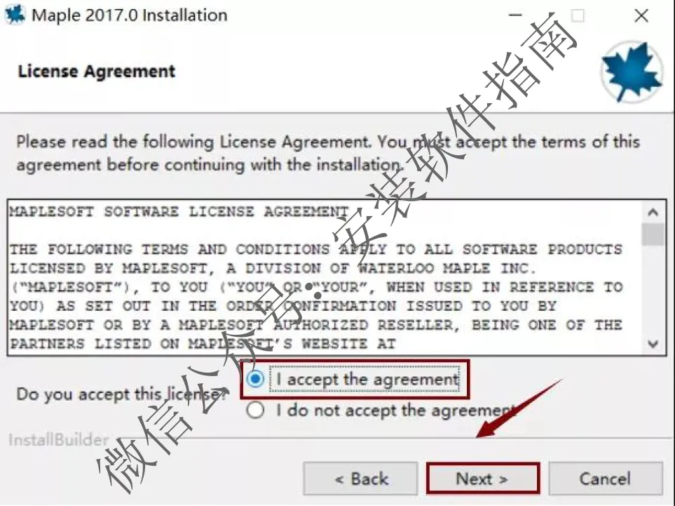 4、选择“I accept the agreement”,然后点“Next”。