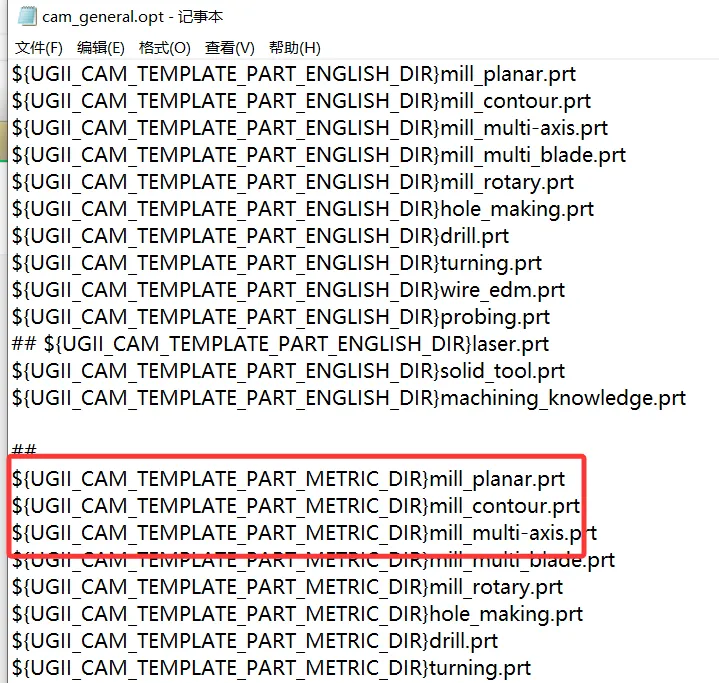 1.把设置好的加工模版PRT图档复制到metric文件夹里面