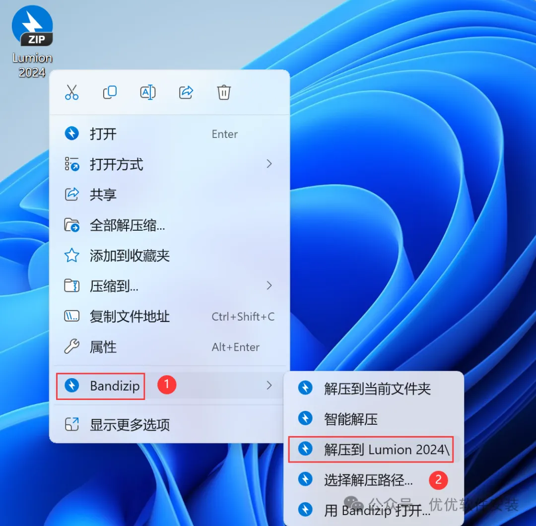 1、下载Lumion 2024软件安装包到电脑上,右键选择【解压到Lumion 2024\】