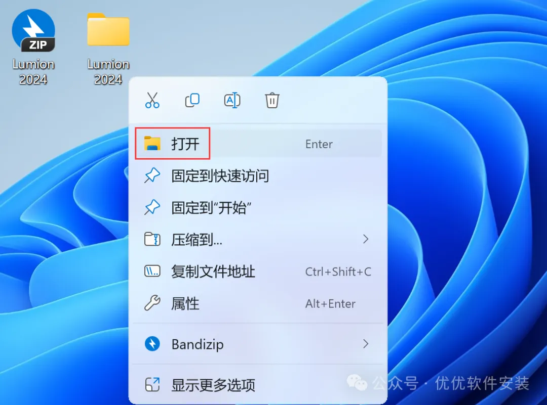 14、回到桌面,右键桌面上的【Lumion 2024软件图标】,点击【打开】
