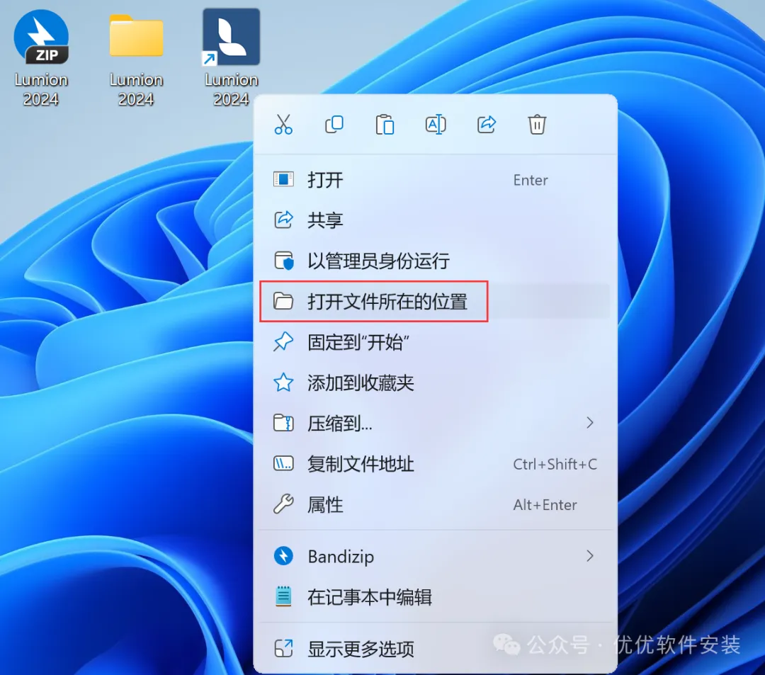 8、回到桌面,右键桌面上的【Lumion 2024软件图标】,点击【打开文件所在的位置】