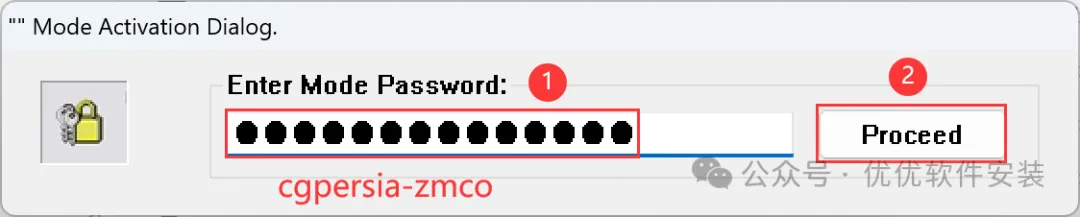 11、输入密码:cgpersia-zmco,再点击【Proceed】