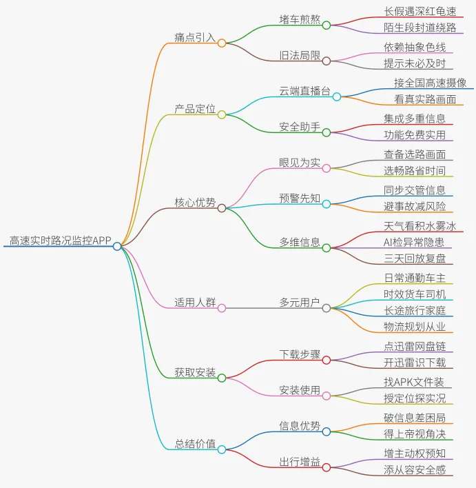 安装使用:下载完成后,在手机文件管理中找到APK文件安装即可。安装后打开APP,授予必要的定位权限(以便它推荐你附近的高速监控),就可以开始探索全国高速的实时实况了。