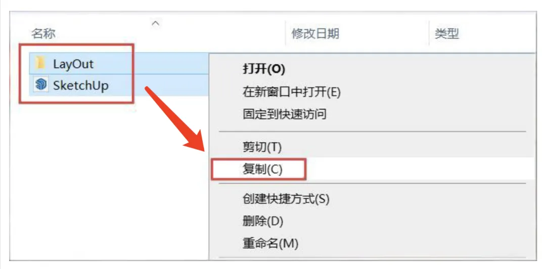 返回之前解压的文件夹,打开文件夹:Crack,复制里面的:LayOut和SketchUp两个文件。