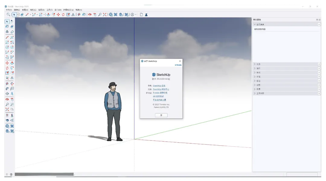 双击桌面图标启动SketchUp 2025。在许可协议界面,勾选:我同意...,然后点击继续。
