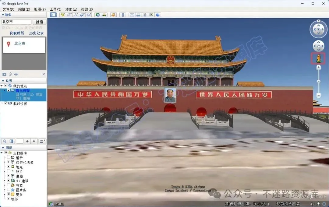 3、在谷歌地球可以看到高清影像,还能在部分的地区看到三维模型