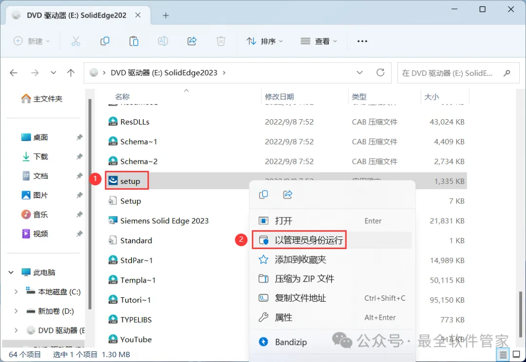 4、找到【setup】应用程序,右键选择【以管理员身份运行】它