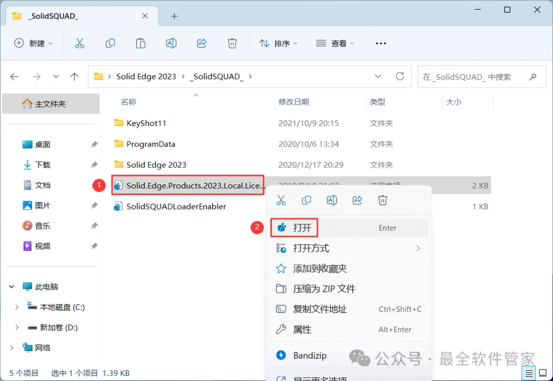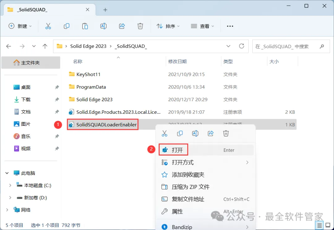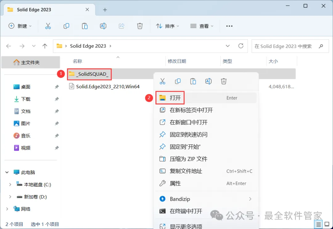 8、回到Solid Edge 2023文件夹,找到【_SolidSQUAD_】文件夹,右键【打开】它