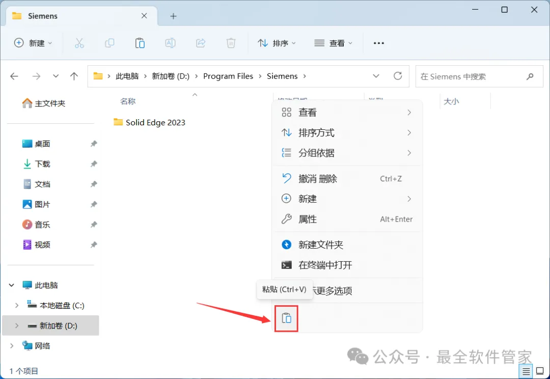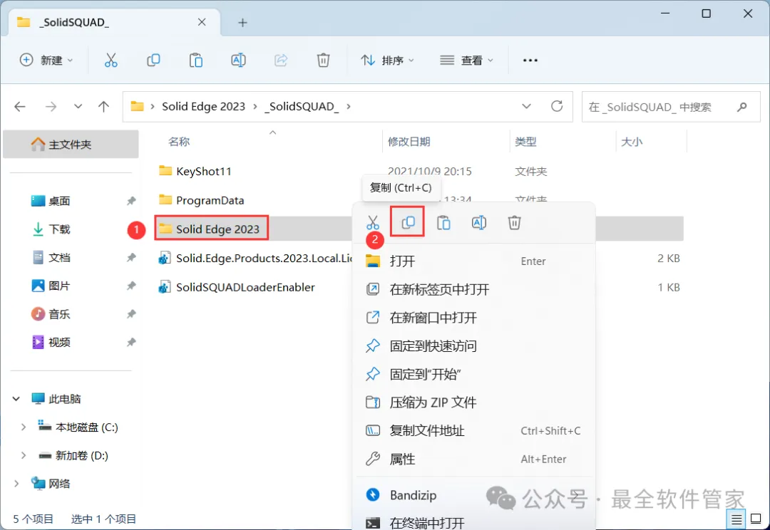 9、找到【Solid Edge 2023】文件夹,再右键点击【复制按钮】