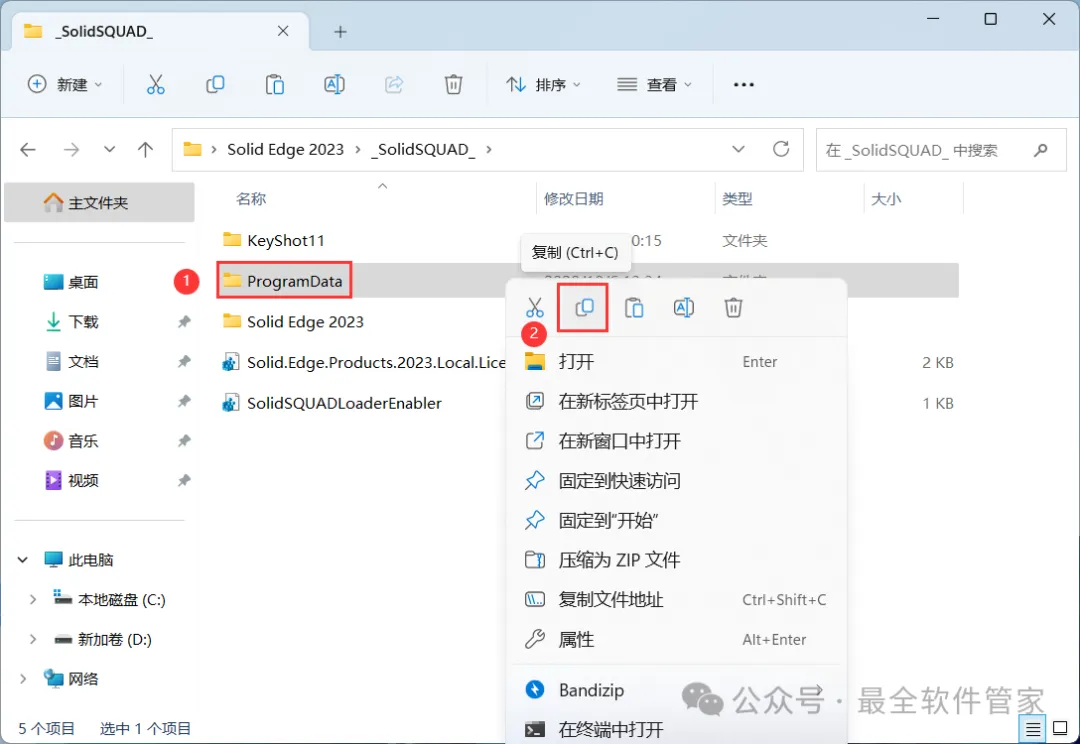 16、回到_SolidSQUAD_文件夹,找到【ProgramData】文件夹,再右键点击【复制按钮】