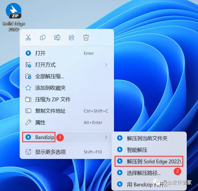 1、下载Solid Edge 2022软件安装包到电脑上,右键选择【解压到Solid Edge 2022\】