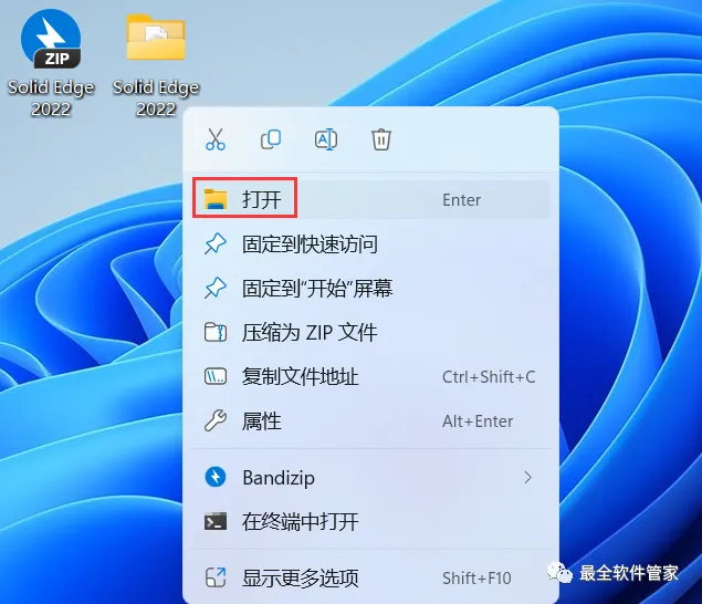 30、回到桌面,右键桌面上的【Solid Edge 2022软件图标】,点击【打开】