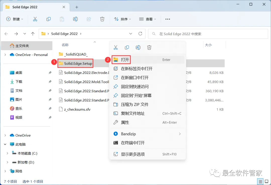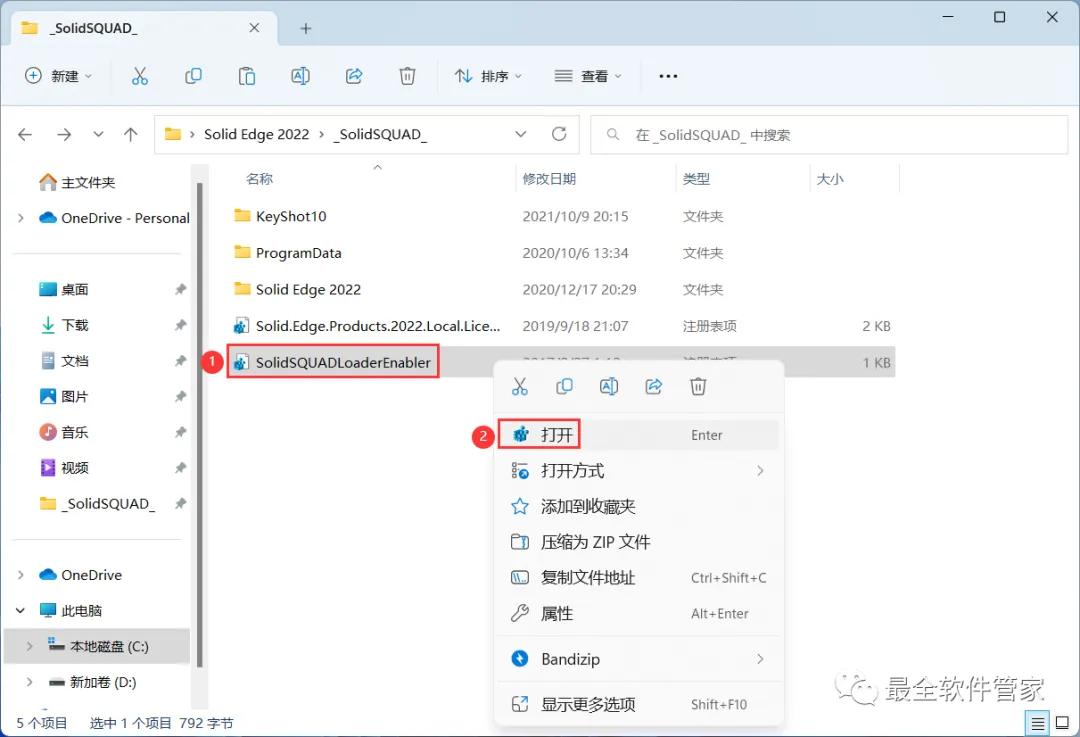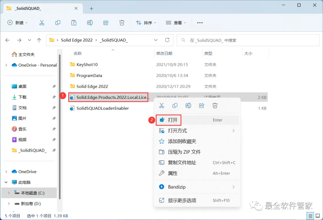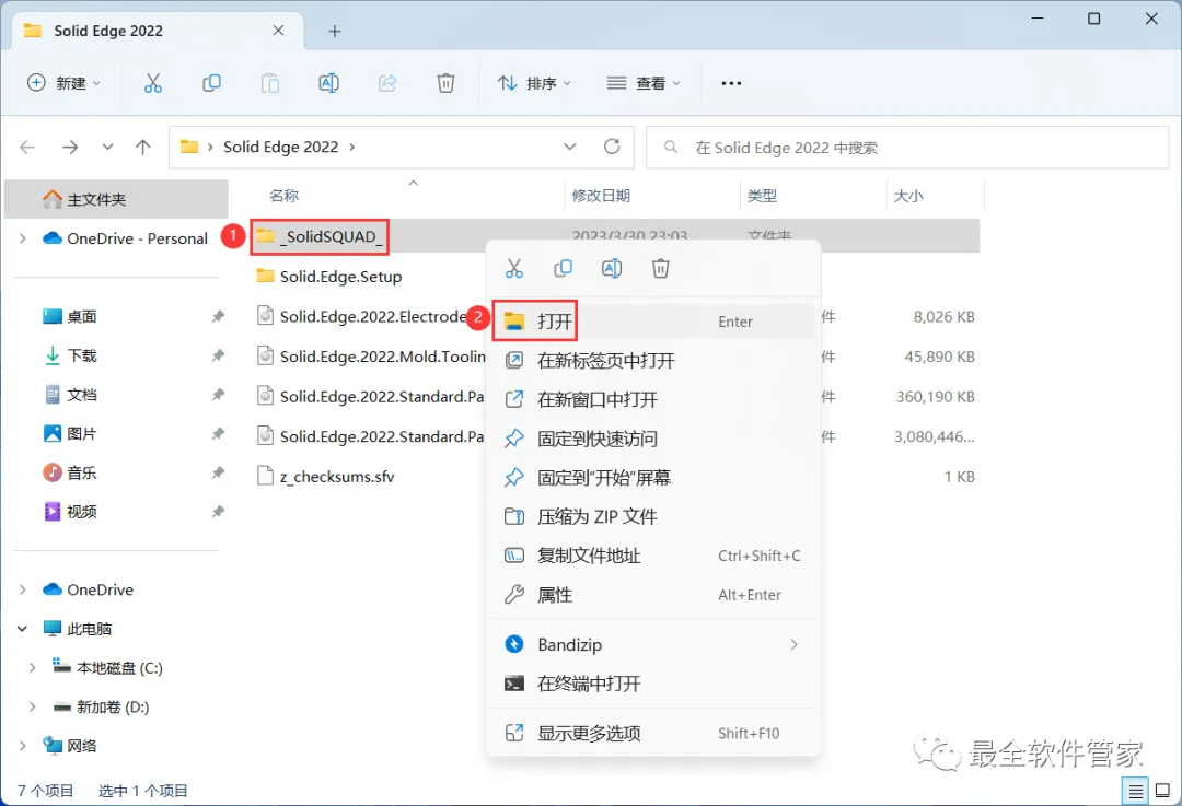 19、回到Solid Edge 2022文件夹的_SolidSQUAD_】文件夹,找到【Solid.Edge.Products.2022…】文件,右键【打开】它