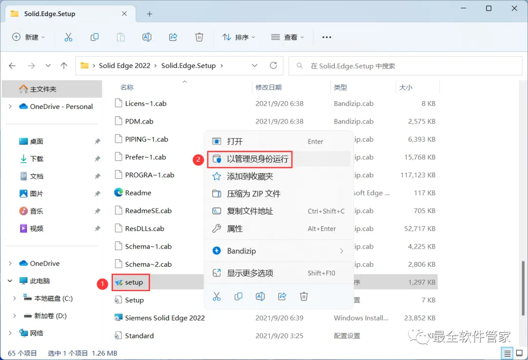 4、找到【setup】应用程序,右键选择【以管理员身份运行】它